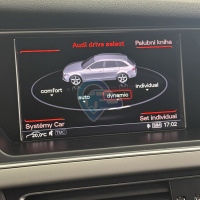 - dodělání plnohodnotného Audi Drive Select (ADS) obnášelo dodání tlačítka pro panel navigační jednotky, nová kabeláž, korektní zapojení a následné kódování. Poté se již Audi Drive Select (ADS) zobrazuje jak v menu navigace, tak palubní počítač v budících.