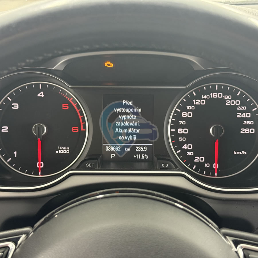 Tato Audi A4 B8 FL byla vyrobena v roce 2013 s navigačním systémem Audi MMI 3G Basic a budíky, které nedisponovaly barevným palubním počítačem (maxidotem). Byla provedena kompletní výměna navigace Audi MMI 3G Basic za Audi MMI 3G Plus s nativní podporou češtiny. Staré budíky byly vyměněny za budíky s barevným palubním počítačem a podporou češtiny. Byla provedena úprava softwaru ECU, dodělání plnohodnotného Audi Drive Select (ADS) a doprovodné kódování, adaptace, parametrizace a odblokování aktivní ochrany komponent (component protection), včetně nastavení korektní hodnoty najetých kilometrů na nových budících.