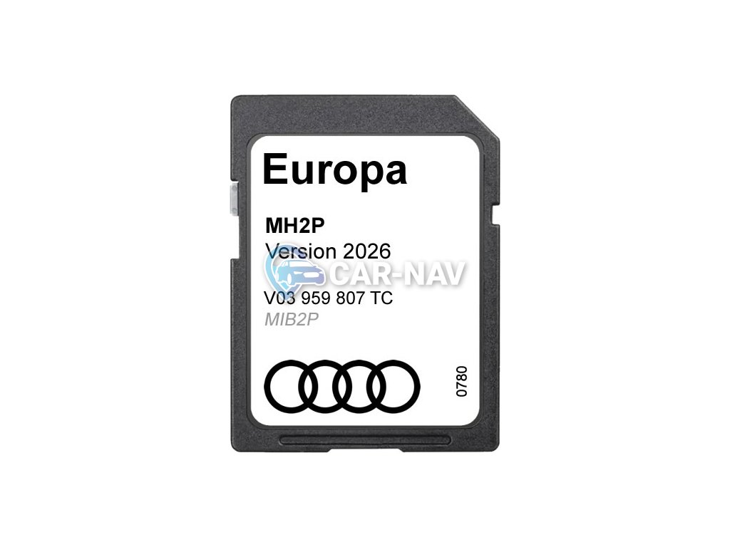 Nejnovější a originální mapy celé Evropy verze 2026 (V03959807TC) na SD kartě pro originální navigace Audi MIB2 High Plus (MH2P). Plná podpora dynamického navigování dle aktuálních dopravních informací - TMC PRO.