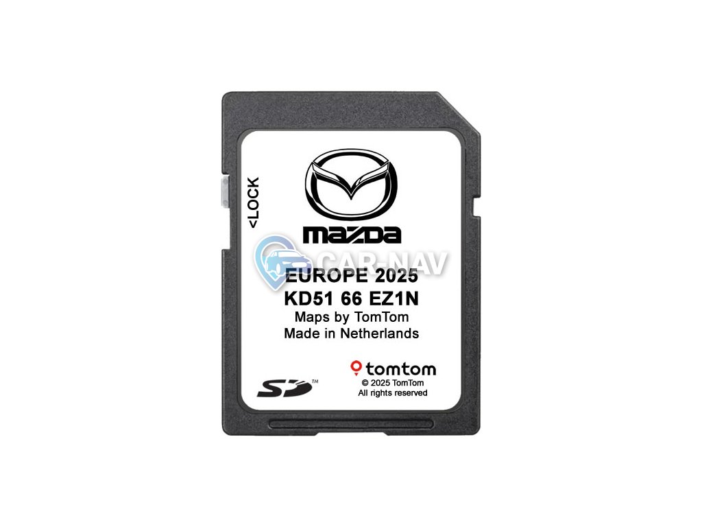 - Originální Mazda NB1 TomTom mapy Evropy 2025 na SD kartě (KD5166EZ1N).