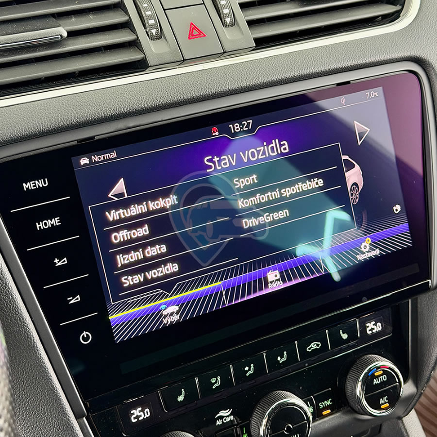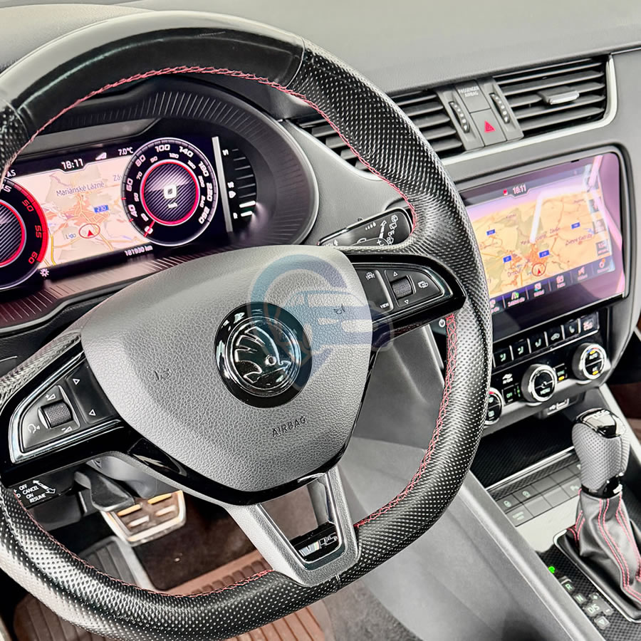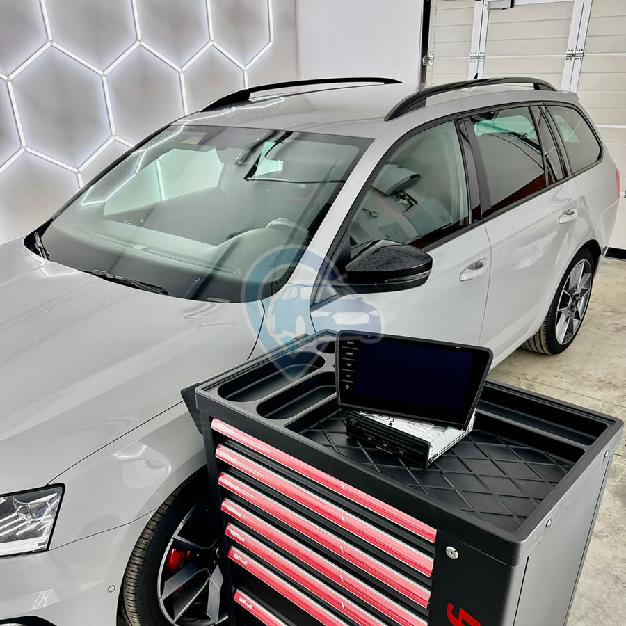 Dodělání (retrofit) originální dotykové navigace Škoda Columbus MIB2.5 do Škoda Octavia 3 FL se Škoda Virtual Cockpit budíky. Byla použita navigační jednotka 565035021 s nejvyšší konfigurací tj. s DAB+ tunerem a LTE (SIM slotem). Po instalaci navigační sady proběhlo korektní zaučení nového dílu od deaktivování aktivní ochrany náhradního dílu, přes kódování a adaptaci. Byla taktéž provedena aktualizace softwaru a map na nejnovější verzi, který byla k danému dni instalace dostupná.