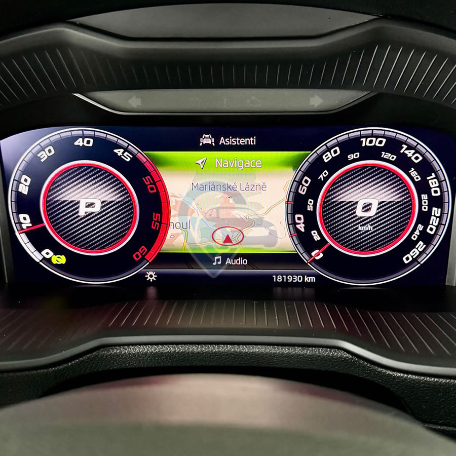 - Aktivace postupného rozsvěcení škály otáčkoměru a rychloměru dle aktuální rychlosti ve Škoda Virtual Cockpit budících.